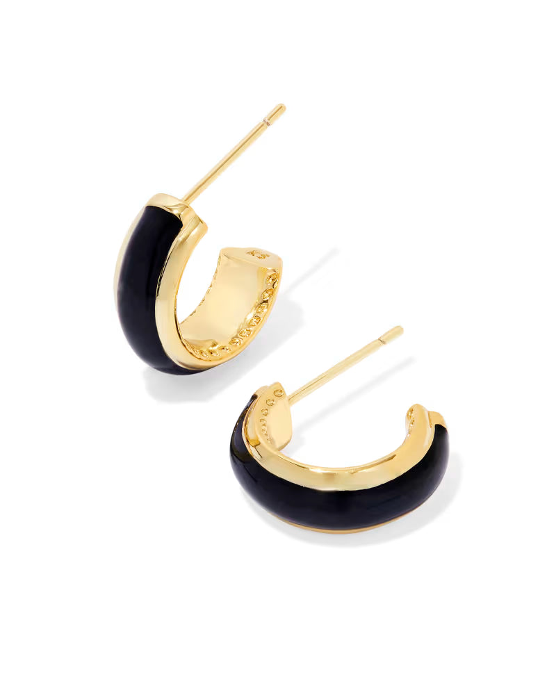 Ainsley Gold Huggie Earrings in Black Enamel