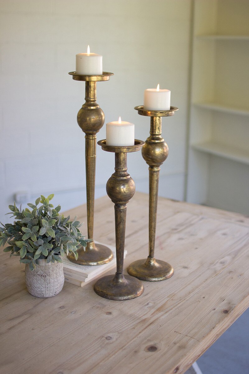 Set of 3 Tall Cast Iron Taper Candle Holders