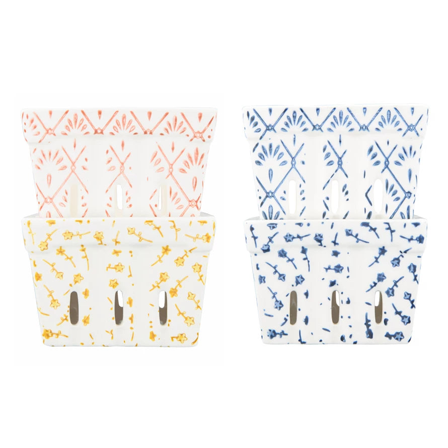 Stoneware Square Berry Basket with Pattern, 3 Colors, 2 Styles