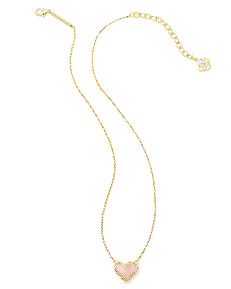 Ari Heart Gold Pendant Necklace in Rose Quartz